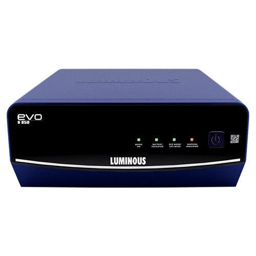 The EVO S series with pure sine wave technology, from the house of Luminous, is a best seller. Additionally, it is equipped with advanced microprocessor design, LVFC technology, user-friendly LED indications, and many other protection features and alarms.